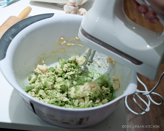 I took a simple butter cookie recipe from The Joy of Cooking (my go-to basics book!) and modified it by adding matcha (Thanks Talida for the inspiration!).