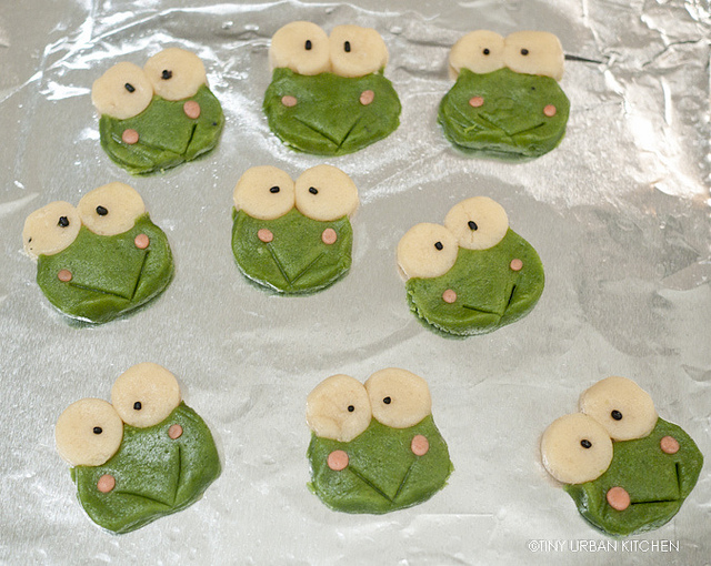 Keroppi is green, so a matcha (green tea powder) seemed like the perfect type of cookie to make.