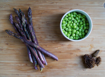 Home » Cuisine » American » Fettucine with Asparagus, Spring Peas, and Morel Mushrooms